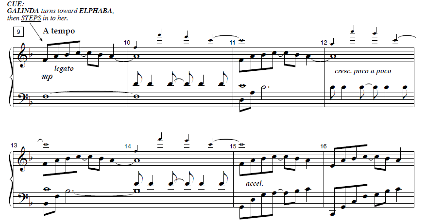 In the middle, during the Ozdust ball, is where I geek out. In the original musical, during Elphaba’s dance, this is the backing that plays:
